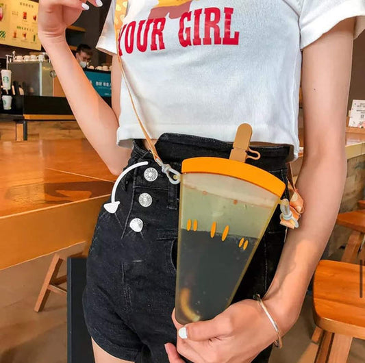 Rainbow color double layer plastic water bottle with straws Milk cup