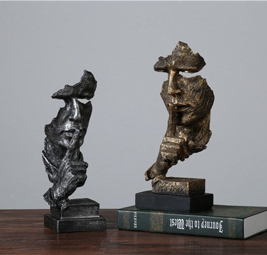 Elevate your living or office space with our exquisite Abstract Face Sculpture Table Décor. These modern art resin statues, with their unique and thought-provoking design, capture the essence of human expression in abstract forms. Featuring three distinct sculptures that represent silence, contemplation, and introspection, these pieces are perfect for art lovers who appreciate deep symbolism in their décor. Crafted with fine attention to detail and a weathered bronze finish, these sculptures add a touch of elegance and artistic flair to any room. Ideal as a centerpiece or a thoughtful gift, they complement contemporary and modern interiors effortlessly. Bring a touch of creativity and emotion to your space today!