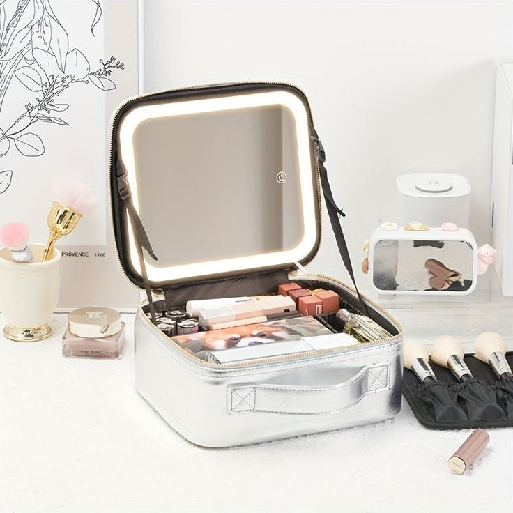 【Game-Changing Portable Dresser】Large capacity cosmetic storage compartment, large makeup brush storage board, perfect lighting guarantee- thanks to an advanced luminous system which designed with3 lighting environments, giving you the freedom to do your make-up comfortably anywhere. The innovation of this cosmetic case doesn't stop there: a single charge will last around one week.