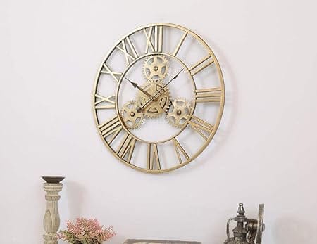 This unique 20-inch metal clock features a gear design. It's imported and comes with a 1-year warranty on the mechanism.
