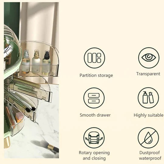 The luxurious finish adds a touch of glamour to your vanity, elevating the aesthetic appeal of your beauty collection. Whether you're a makeup enthusiast, a skincare aficionado, or simply appreciate the finer things in life, this desktop organizer is a must-have addition to your beauty arsenal.